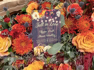up to 50 guests - includes custom printed invites, gift/favor tags, menu cards, 3 custom signs