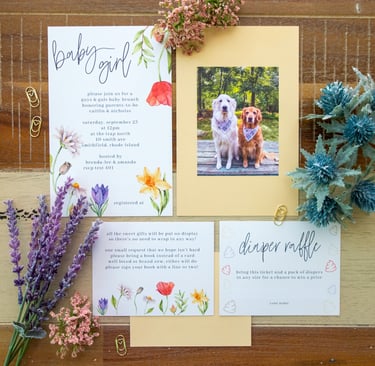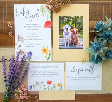 up to 25 guests - includes custom printed invites, gift/favor tags, 3 custom signs